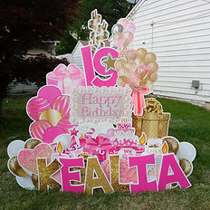 This package features a traditional greeting accompanied by balloons and gifts. Also included is one name, age if appropriate and up to two entertaining colors. Our SIMPLY SPECIAL signs are crafted with 1 – 2 tiers and are available for reservation for two days (48 hours) at a price of $110.